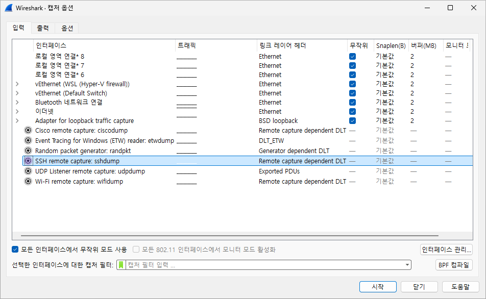 (필요하면, capture filter를 설정하여 정보를 걸러서 보도록 한다.)